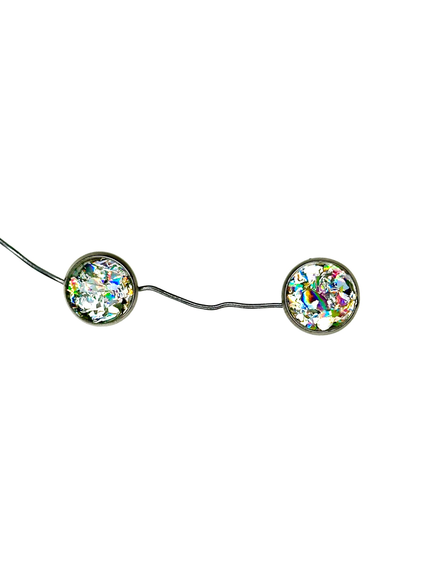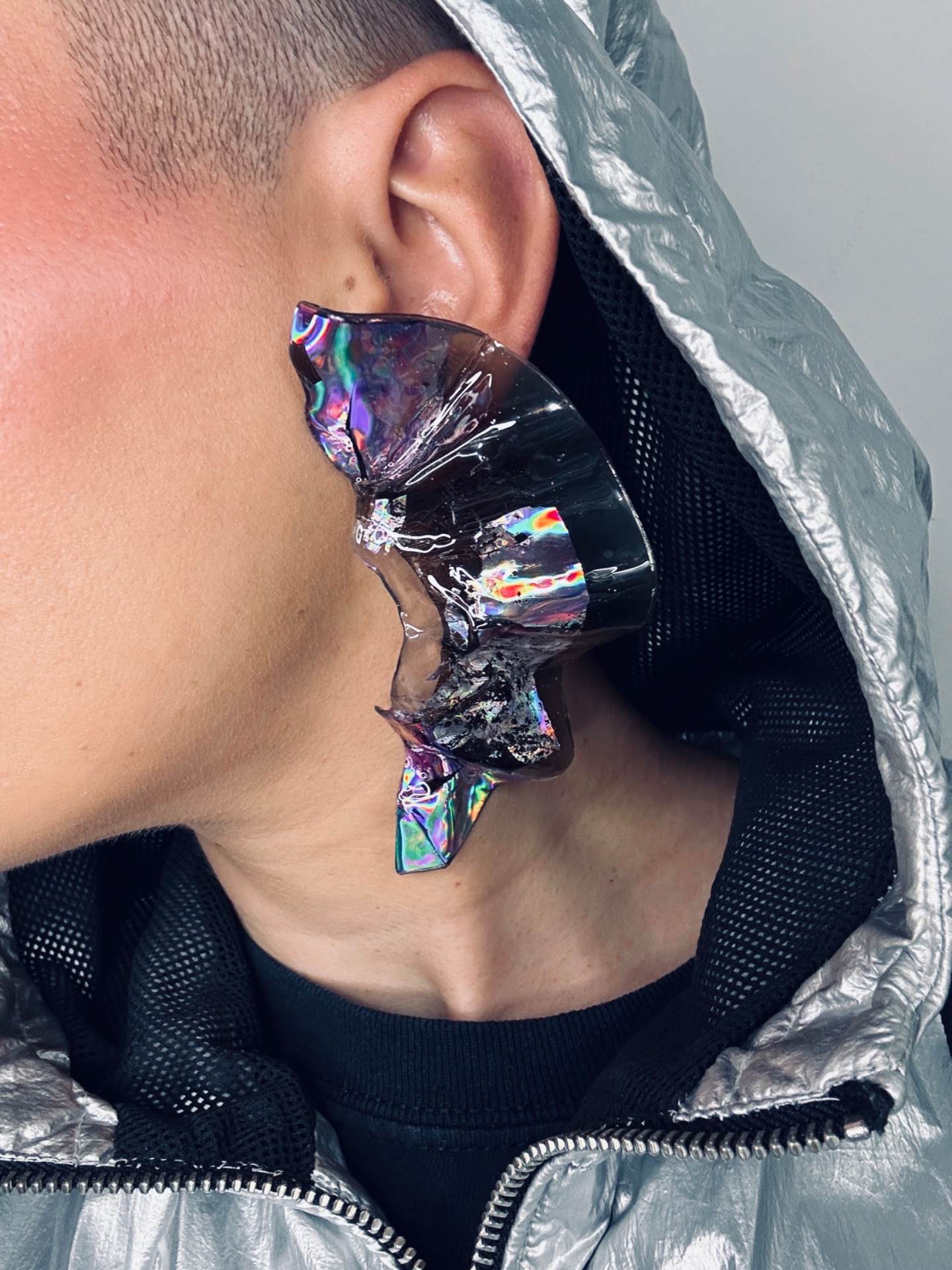 Dizajnové holografické šperky z recyklovaných CD. Každý kus sa môže mierne líšiť v detailoch.