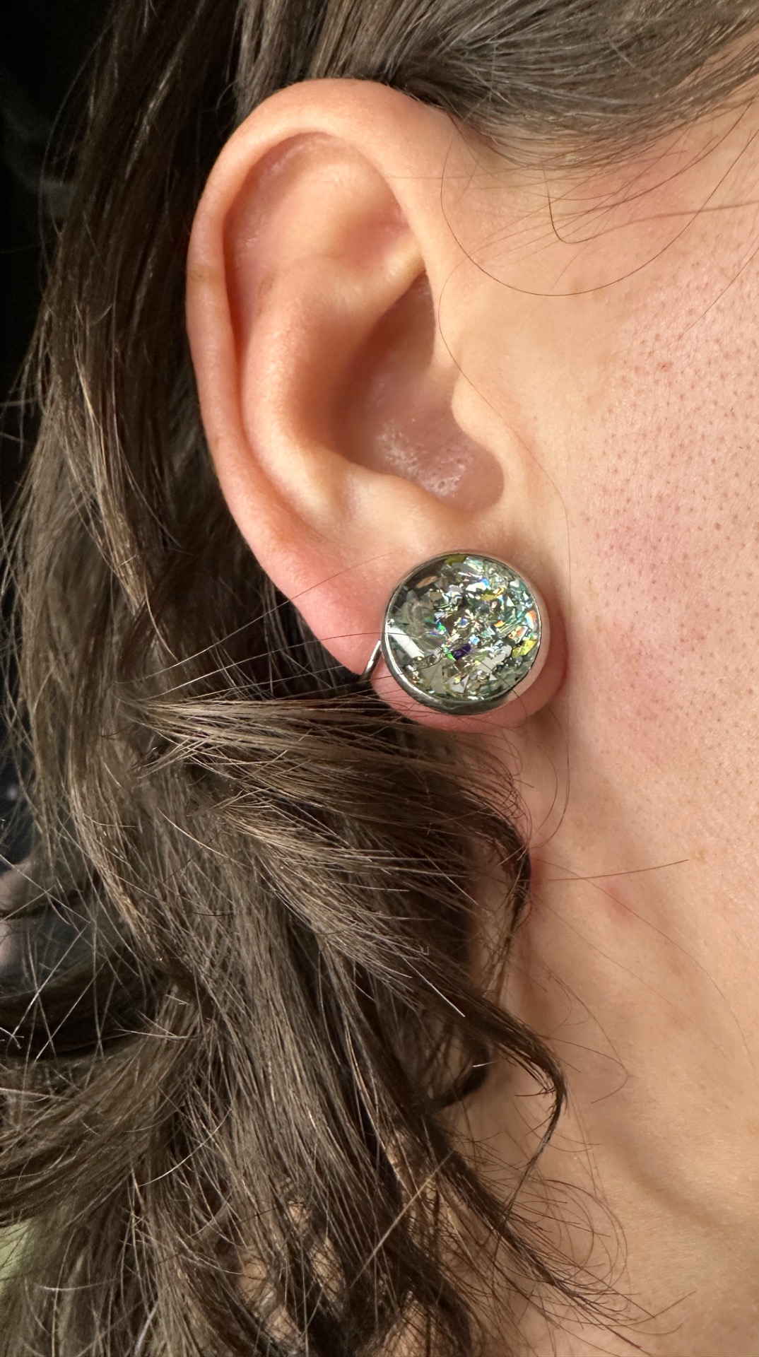 14mm holografické okrúhle napichovacie náušnice